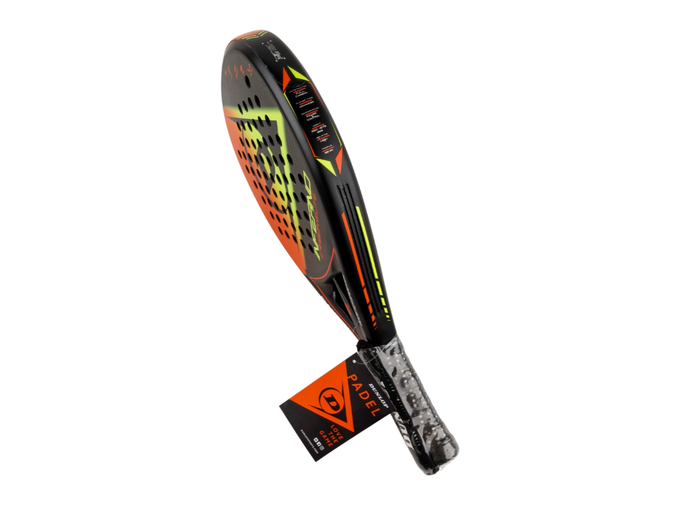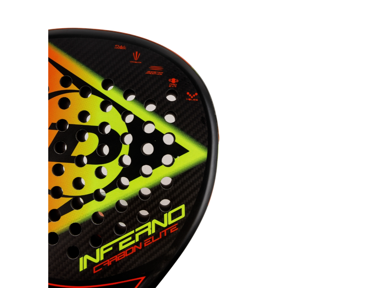 La Dunlop Inferno Carbón Elite cuenta con un amplio punto dulce, lo que mejora significativamente el equilibrio entre potencia y control. Esto te permite impactar la bola con mayor precisión y eficacia, incluso en golpes descentrados.