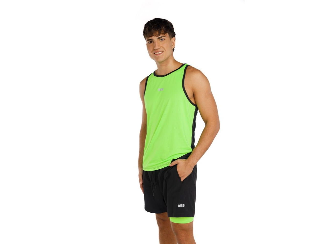 Confeccionada en resistente set de poliester negro con tecnología dry fit que absorbe el sudor y te mantiene seco mientras entrenas.